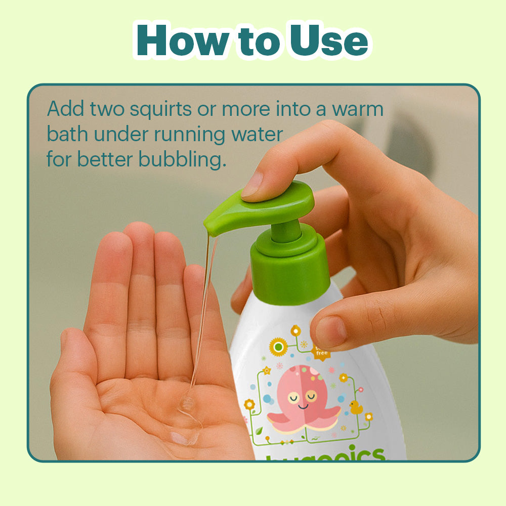 Add two squirts or more into a warm bath under running water for better bubbling. Since our bubble bath is formulated with plant-derived ingredients, you may want to lend a hand by swishing around the water for even more bubbles…we’re sure your little ones will love to help!